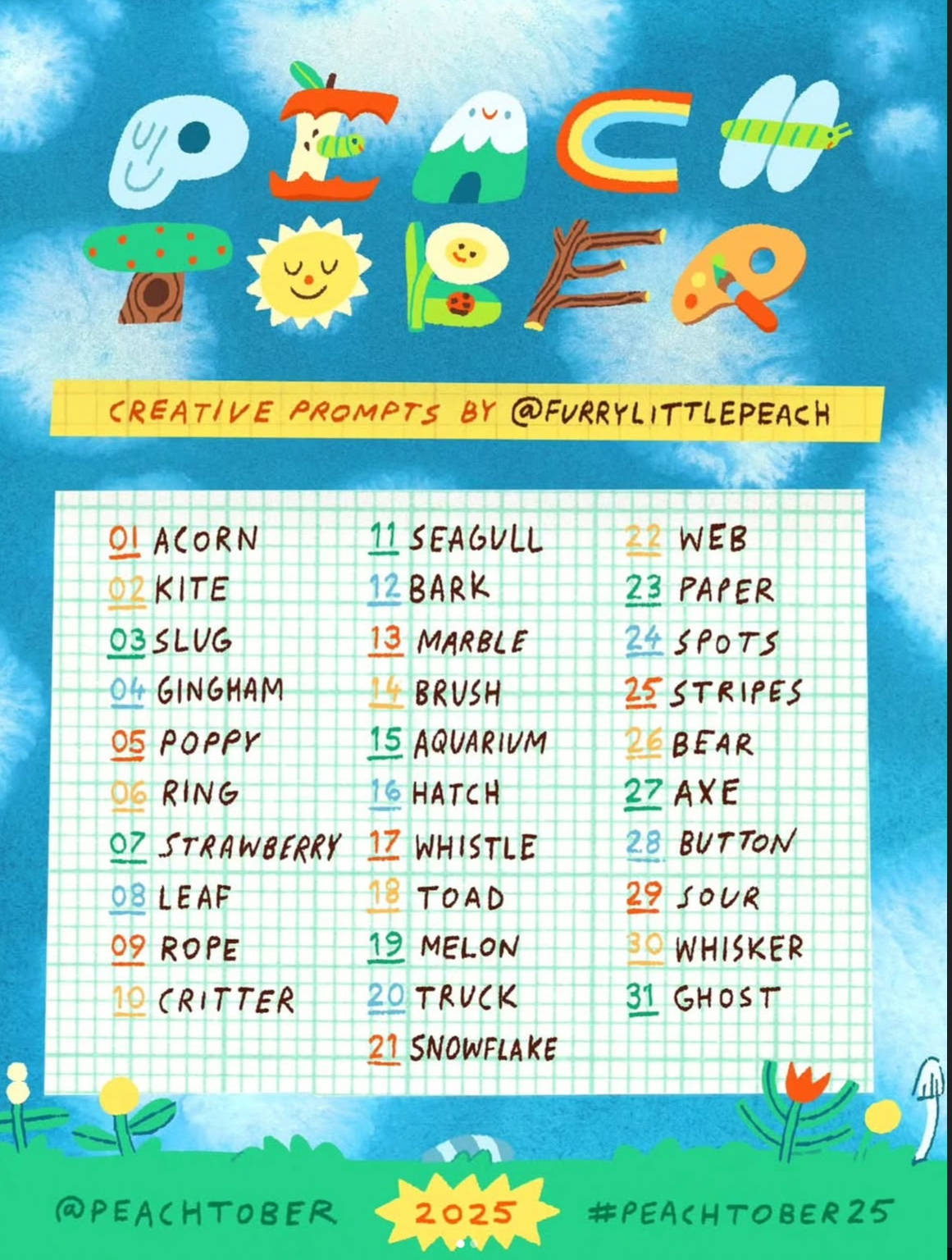 The illustrations were created as part of a drawing challenge that takes place every October on social media. At the beginning of the month, a list of prompts is published — one for each day — resulting in a series of 31 drawings by the end of the month. This year, I took part in @peachtober. Such challenges are a great exercise and an opportunity to explore and improve one’s drawing skills.